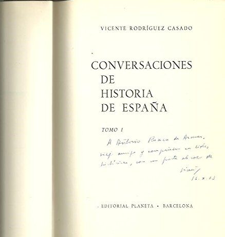 "Conversaciones de Historia de España" es un libro publicado en 1963 por Vicente Rodríguez Casado y Editorial Planeta, es un debate historiográfico sobre la historia de España que cuestiona interpretaciones tradicionales y explora perspectivas locales y regionales.