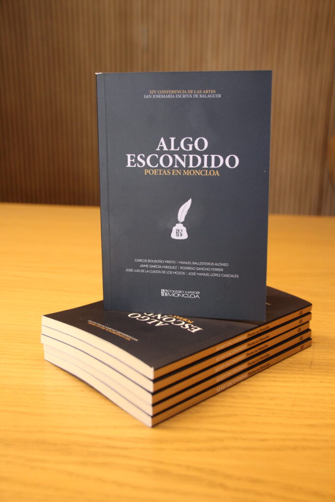 “Algo escondido”. Poetas en Moncloa era el título del recital y también del volumen editado para la ocasión. El librito, que se entregó a cada uno de los presentes para que todos pudieran seguir la lectura, recoge una selección de poemas de cada uno de los invitados, así como una breve biografía (donde se subraya el paso por Moncloa) y una «invitación a la poesía».